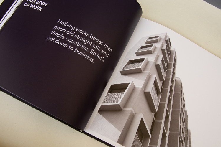 We adopted an image style that helped in better exhibiting the uniformity, symmetry and the clean facades that define Ratnaakar. The black and white images and the bug’s eye view of buildings complimented the confident voice behind.