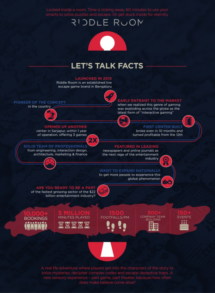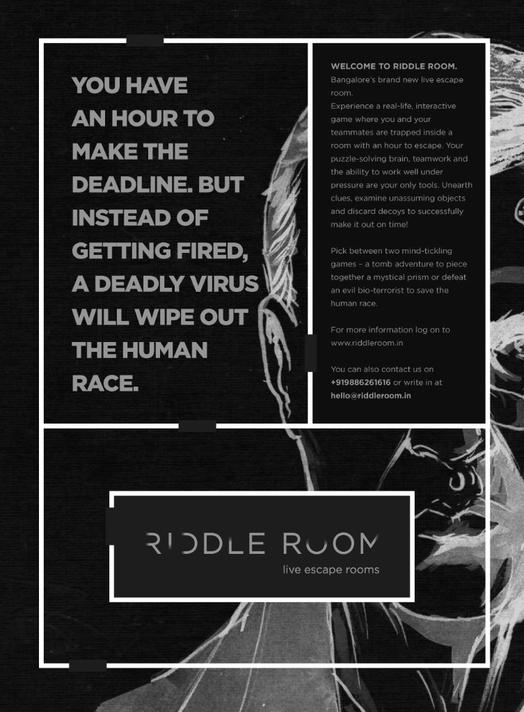 We named the brand “The Riddle Room”as it implied a definitive space within which a person has to use their smarts to solve riddles. It had a sense of mystery to it and creteed curiosity around what is the purpose of this room and what the riddles are for.