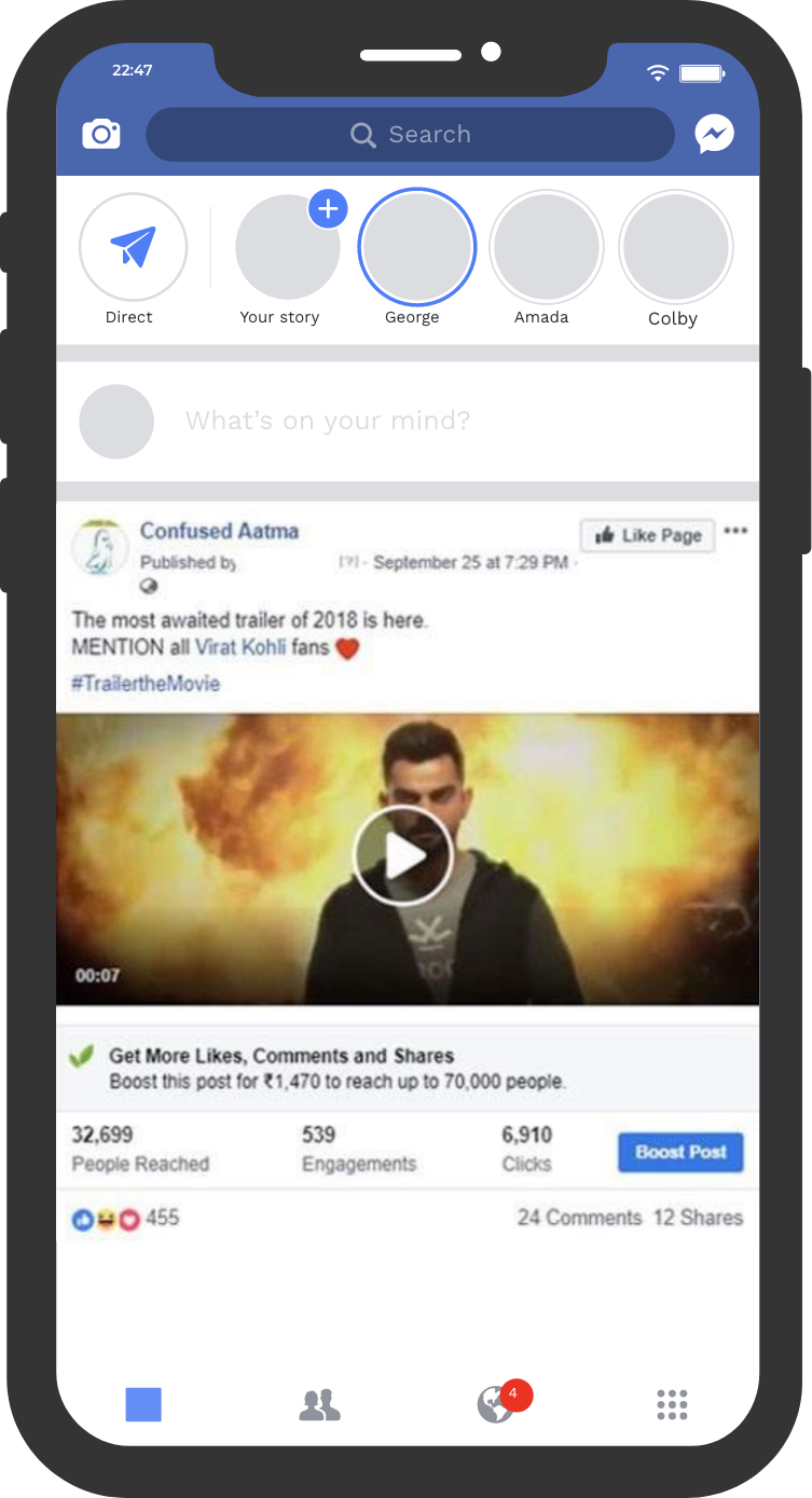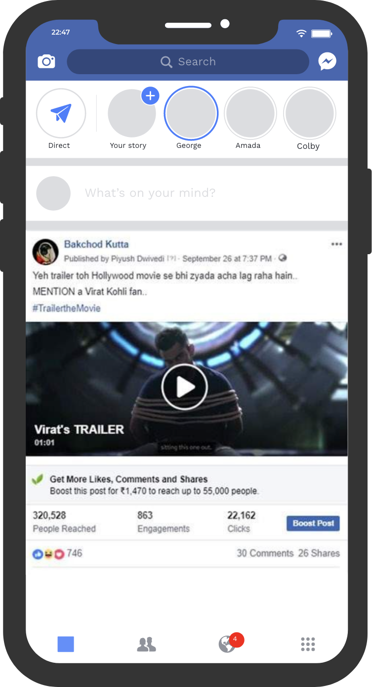 We partnered with leading influencers across lifestyle, bollywood, entertainment and mainstream media to drive social media chatter around the Virat Kohli starrer 'The Trailer'. This led to #TRAILERTHEMOVIE trending through the day